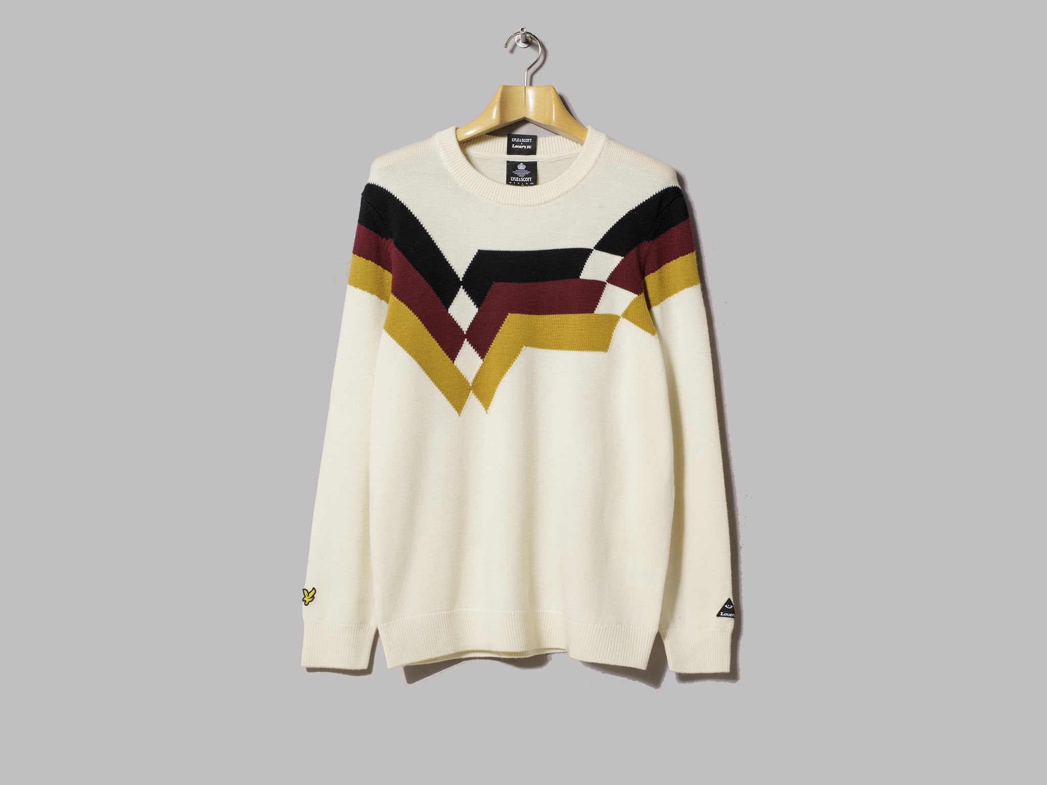 Terrace stalwarts Lyle & Scott have smashed their craniums together with football’s numero uno fountain of knowledge Neal Heard (the man behind Lovers FC) to create a small collection of merino wool jumpers inspired by the glory days of the beautiful game. This goes by the moniker Geometric Stripe Knitted Jumper, and (in case you couldn’t tell from those colours) is a winter-friendly appropriation of the Germany home kit from the early 90s, which is widely considered to be one of the best football shirts of all time.